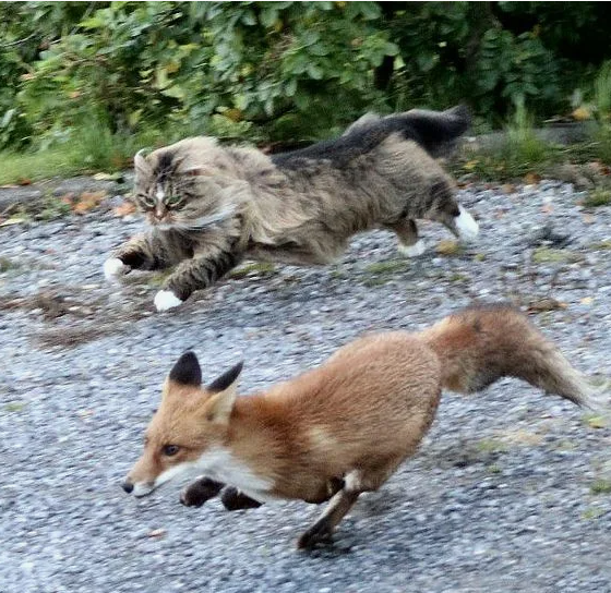 Как поведали горожане, рыжая хищница и кот встретились на площадке у мусорных контейнеров вечером 11 ноября.